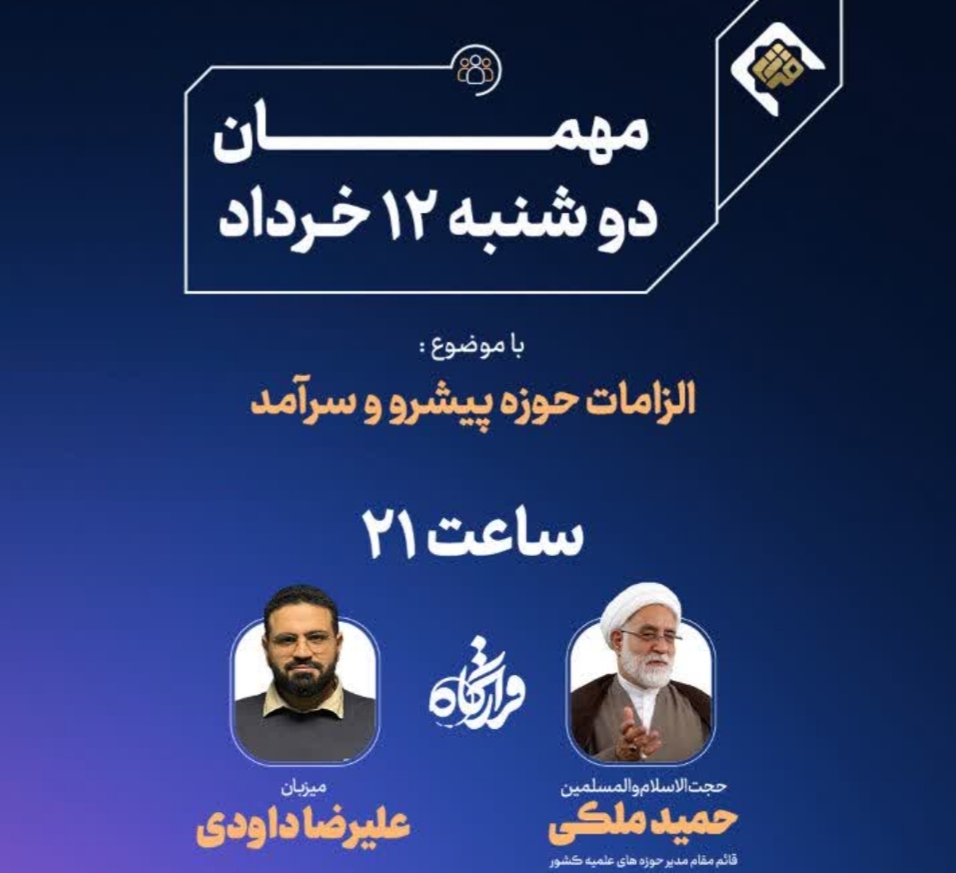 برنامه قرارگاه دوشنبه ۱۲ خرداد به صورت زنده با موضوع الزامات حوزه پیشرو و سرآمد، از شبکه قرآن و معارف سیما پخش می شود .