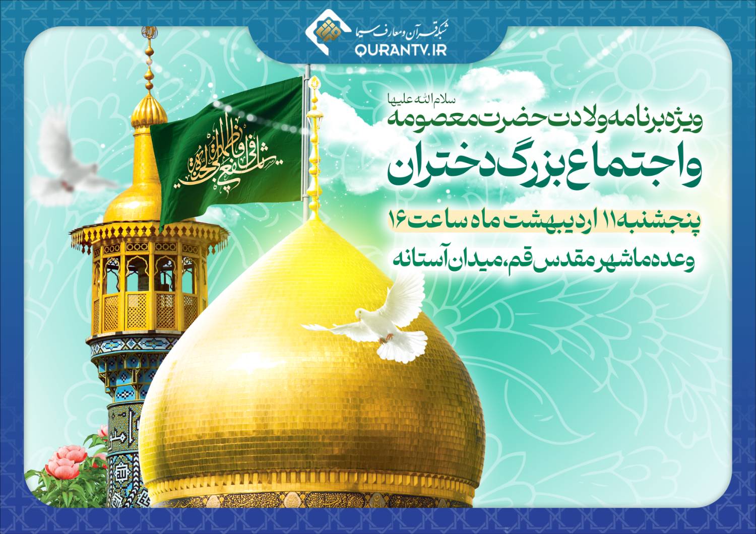 به مناسبت میلاد بانوی آب و آیینه، جلوه پاکی و طهارت حضرت فاطمه معصومه سلام الله علیها ویژه برنامه جشن دختران سرزمینم ایران در شهر قم ، ورزشگاه شهید حیدریان در روز شنبه مورخ 30 اردیبهشت ماه، از ساعت 16 الی 19 برپا می شود.