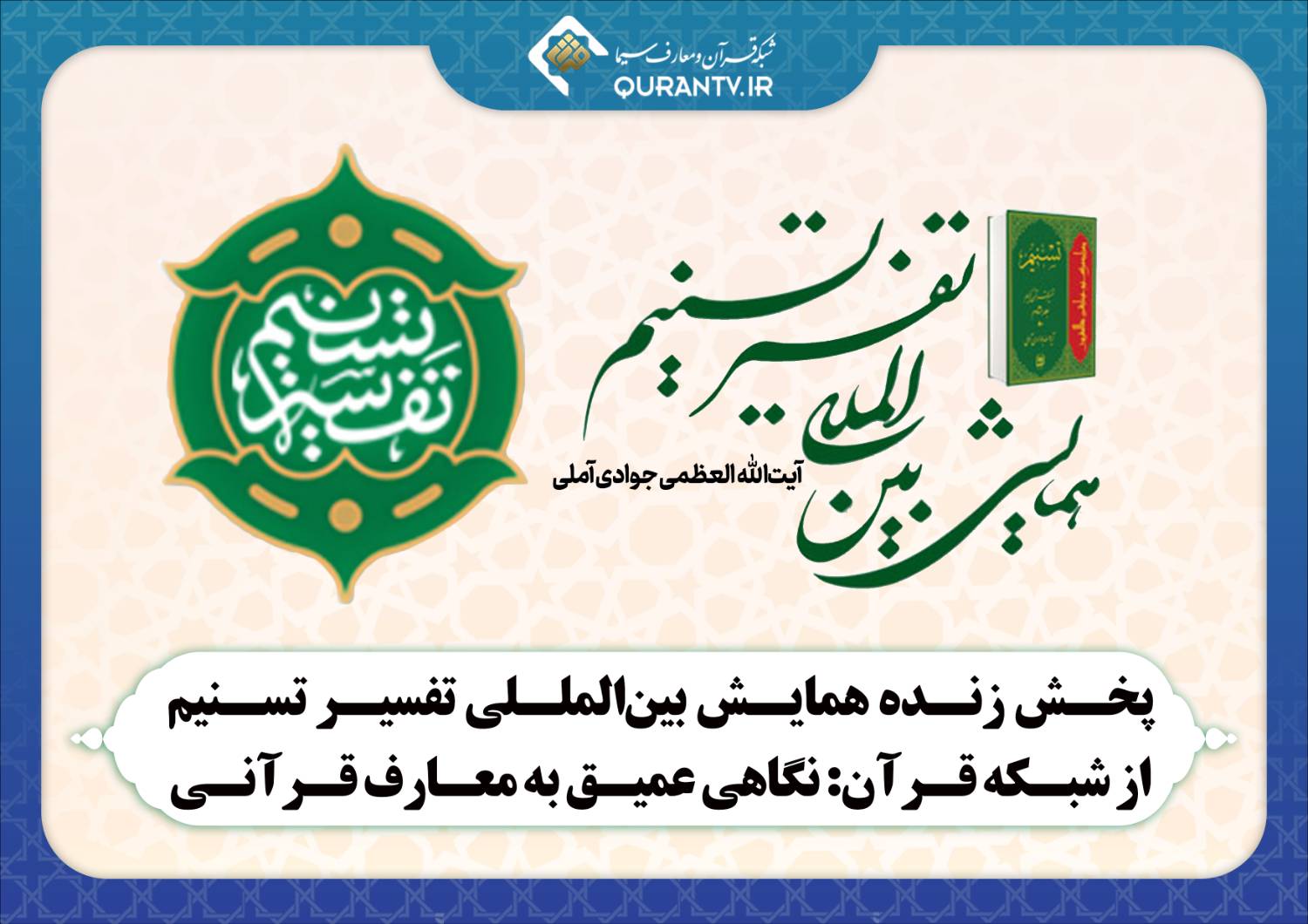 پخش زنده همایش بین‌المللی تفسیر تسنیم از شبکه قرآن: نگاهی عمیق به معارف قرآنی به گزارش روابط عمومی شبکه قرآن ومعارف سیما، برگزاری همایش «بین المللی تفسیر تسنیم» به صورت زنده از قاب شبکه قرآن ومعارف سیما برای علاقمندان و قرآن پژوهان پخش می شود.